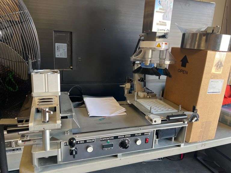 Lot 1: MEDICATION TECHNOLOGIES MTS 350T AUTOBOND MACHINE WITH JBM PACKAGING 3"x3" WHITE WOVE 24LB PACKET CASE INCLUDED