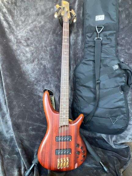 Lot 25: SOUNDGEAR BY IBANEZ SR500E BASS BROWN MAHOGANY BASS GUITAR IN GREAT CONDITION, COMES WITH KACE'S III TRAVEL CASE AND ADJUSTABLE GUITAR STAND